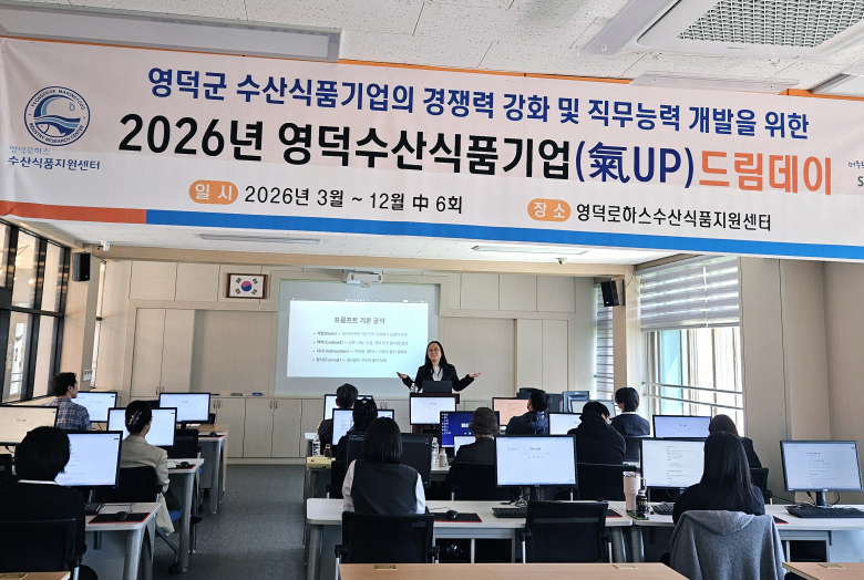 영덕 로하스수산식품지원센터는 수산식품 기업들의 경쟁력을 강화하기 위해 진행하는 ‘영덕 수산식품 기업(氣UP) 드림 데이(Dream Day)’ 교육 프로그램의 일환으로 지난 16일 ‘AI 활용 역량 강화 교육’을 시행했다.