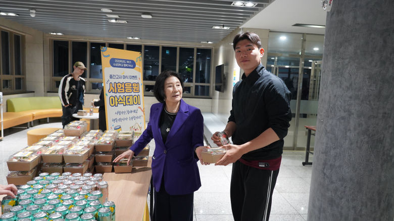 김선순 총장은 학생들에게 직접 야식을 나누어 주며 “이번 야식 지원이 시험공부로 지친 학생들에게 작은 활력소가 되길 바란다”며, “단순히 간식을 나누는 것을 넘어 기숙사 내 공동체 의식을 높이고, 학생들이 머물고 싶은 긍정적인 생활 환경을 조성해 나갈 것”이라고 밝혔다. 한편, 수성대학교 행복기숙사는 매 학기 입주생들의 만족도를 높이기 위해 다양한 복지 프로그램을 운영하고 있다.박경철기자