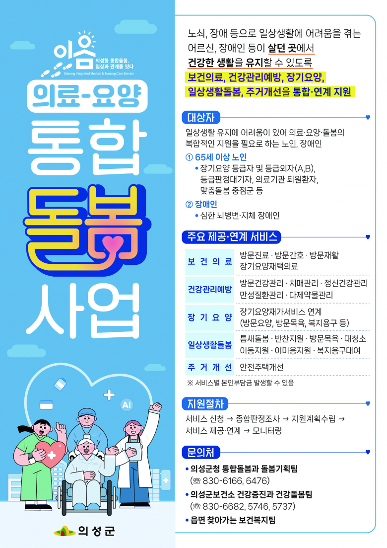 김주수 의성군수는 “의료·요양 통합돌봄사업이 어르신들이 평생 살아온 집과 마을에서 건강한 노후를 보낼 수 있는 든든한 기반이 되길 바란다”고 말했다.