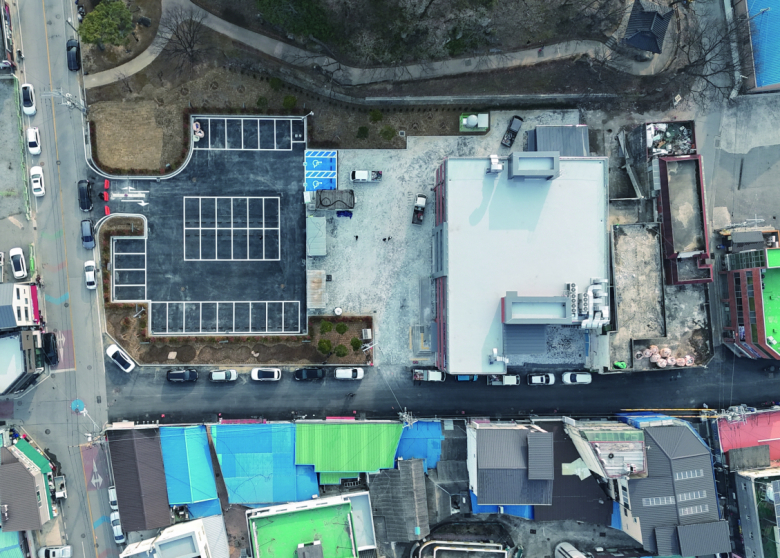 청년내일플러스센터 주차장은 대지면적 953㎡, 주차면수 35대 규모(장애인 주차 2대, 경차 2개)로 조성했으며 이는 인근 왕산공원 주차장 주차면수 36대와 더불어 왕산공원 및 인근 상권 접근성을 크게 개선하였다.