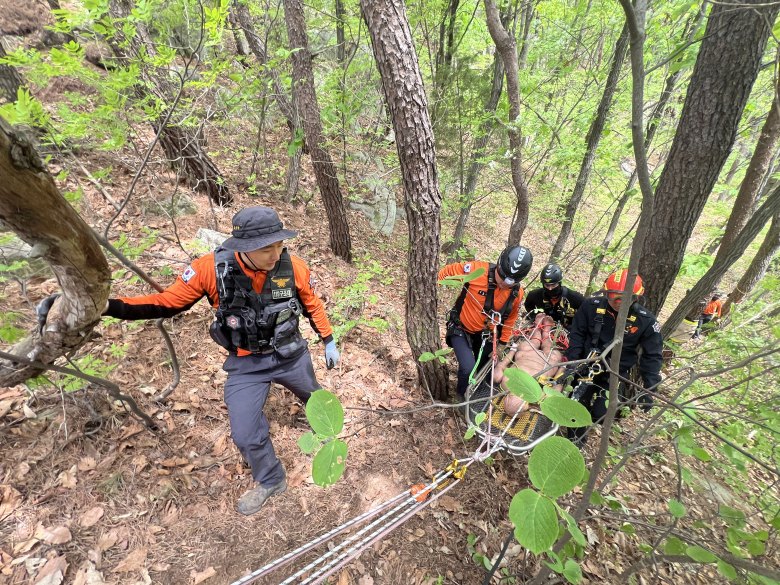 훈련은 산악사고 발생 상황을 가정해 ▲산악 로프 구조(수직·수평 구조) ▲계곡 고립자 인명구조 등을 중심으로 진행됐다.