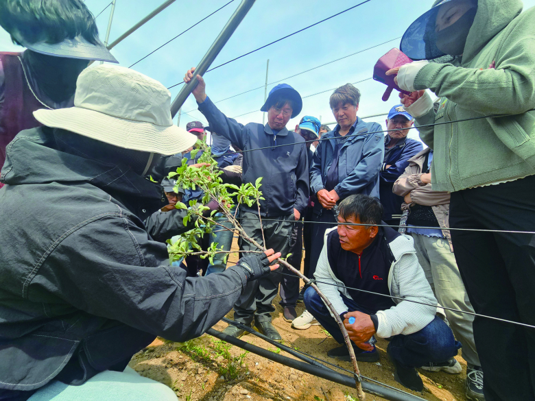 이날 현장 교육에는 지역에서 사과를 재배하거나 이를 준비하는 농업인 80여 명이 참여해 다축형 사과 재배에 대한 열띤 관심과 학구열을 나타냈다.