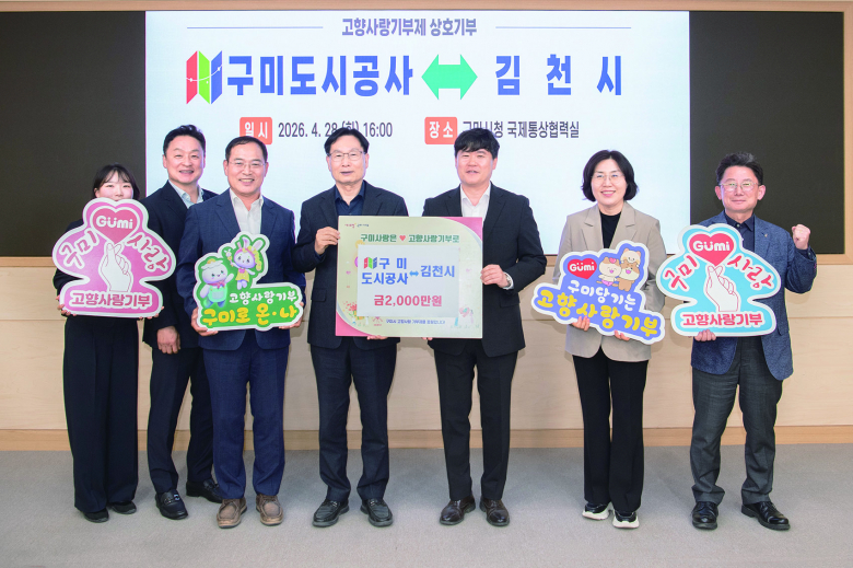 구미시는 28일 구미도시공사와 김천시가 고향사랑기부제 활성화와 이웃 지역 간 상생 발전을 위해 고향사랑기부금 2,000만원을 상호기부했다고 밝혔다. 이번 상호기부는 양 기관 각 200여 명이 자발적으로 참여해 마련됐다. 구미시와 김천시는 지난 2023년 고향사랑기부제 공동협력 활성화 협약을 체결한 이후 4년 연속 상호기부를 이어오고 있다.