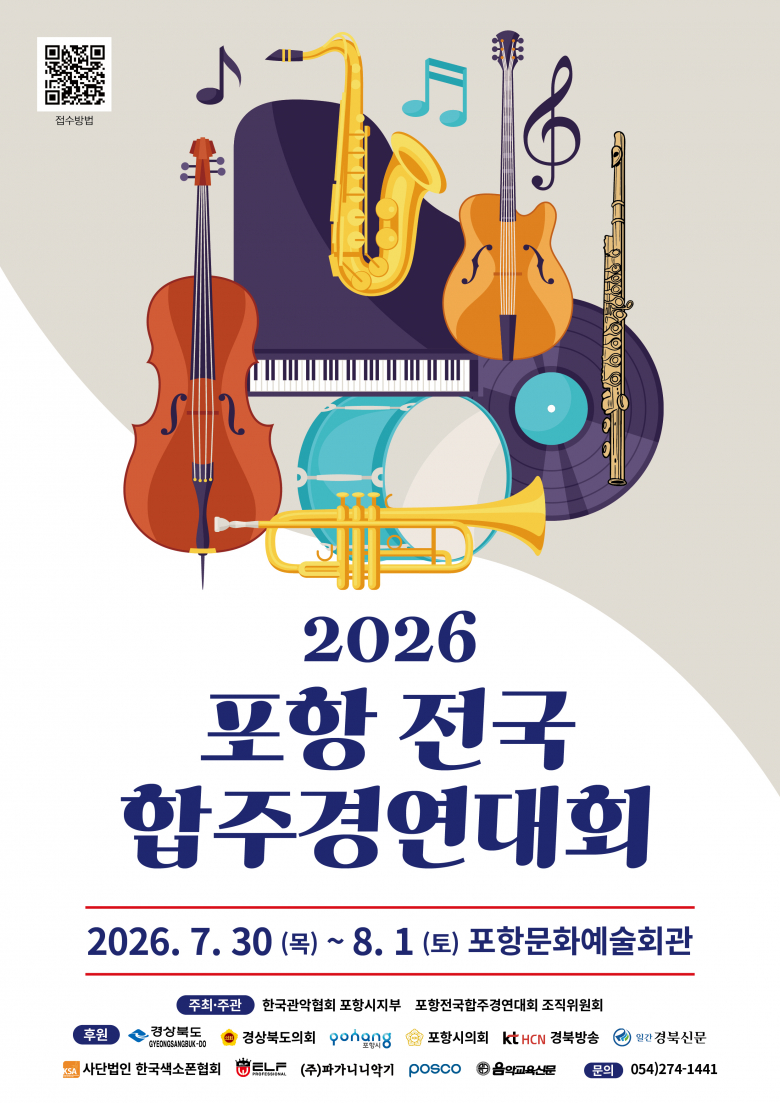 한국관악협회 포항지부는 오는 7월 30일부터 8월 1일까지 사흘간 포항문화예술회관에서 ‘2026 포항전국합주경연대회’를 개최한다.